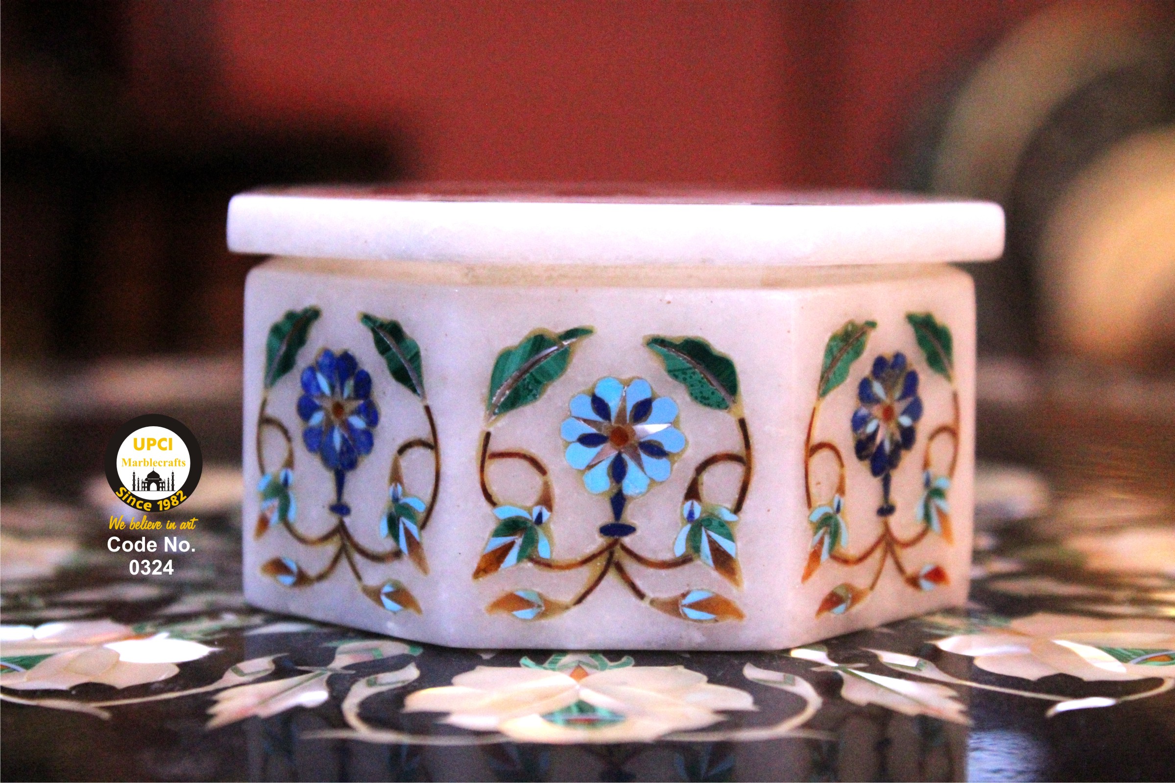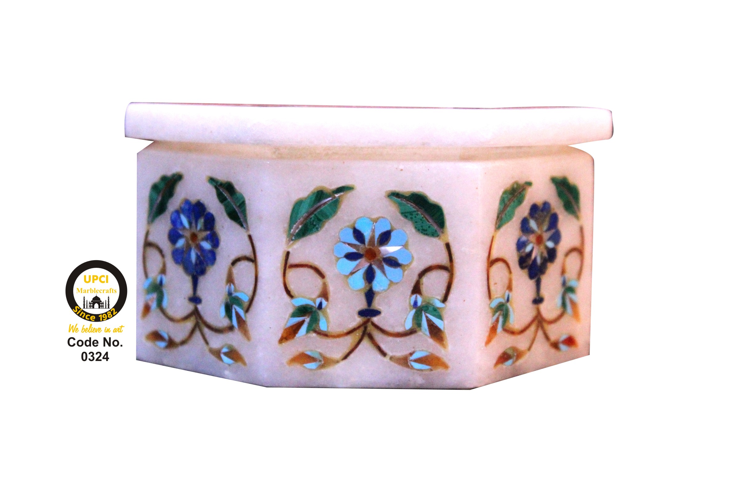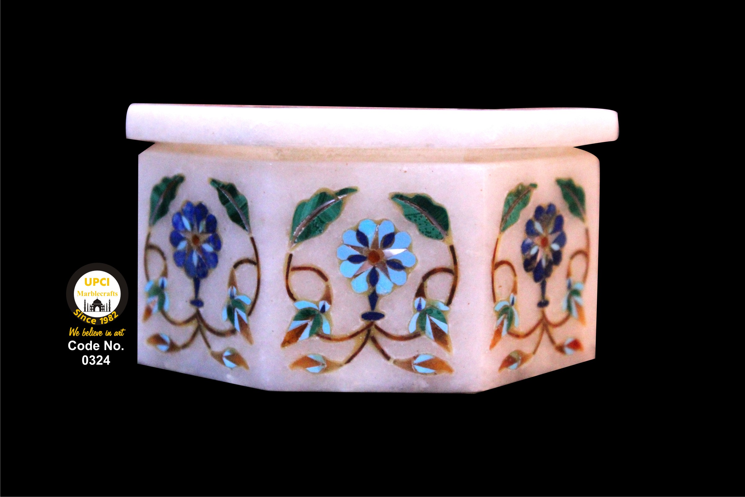 - We use semi-precious stone inlayed on marble like:- Lapis Lazualist, Cornalian, mother of pearl, Melachite, Jasper, Turquoise & Pava shell etc.