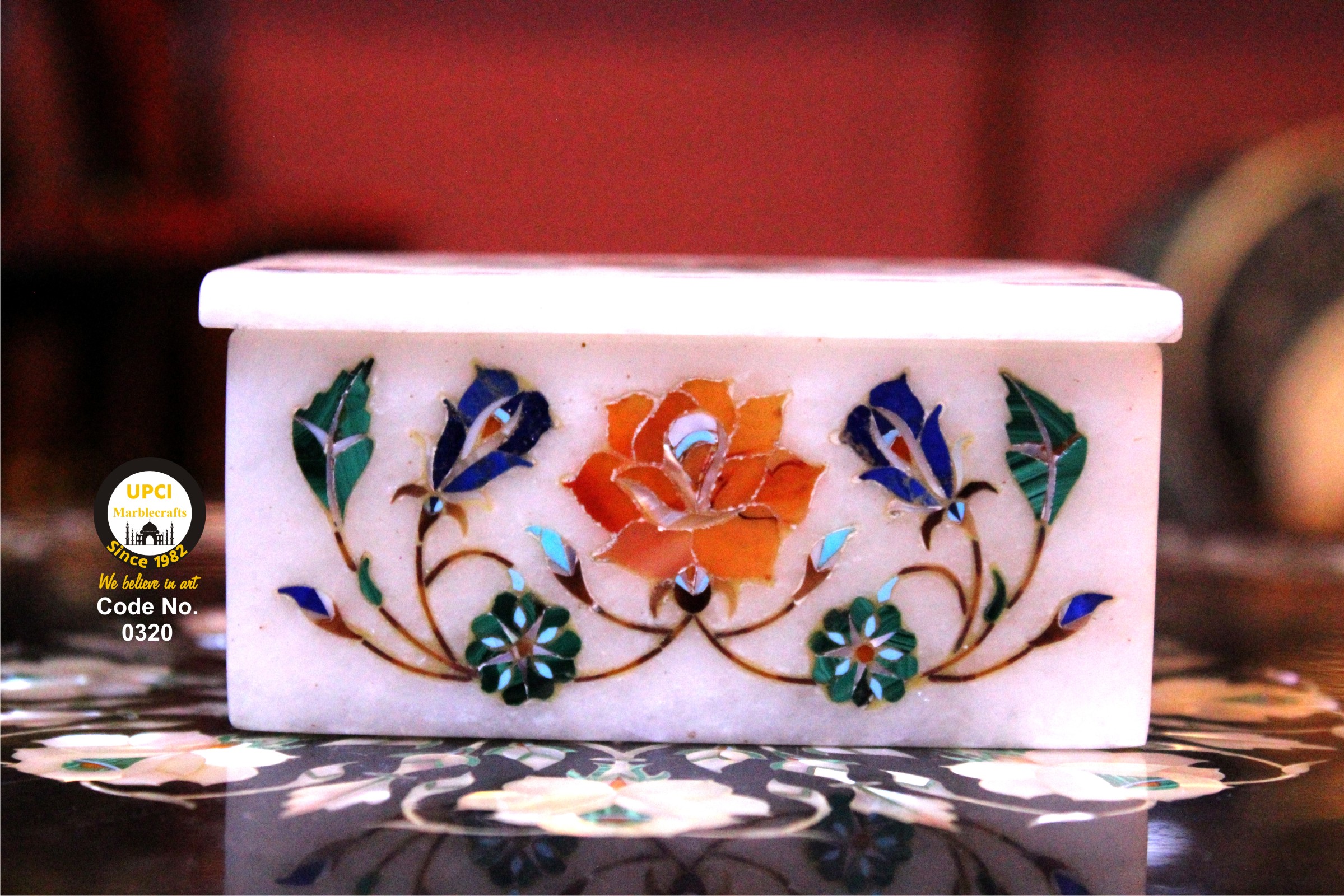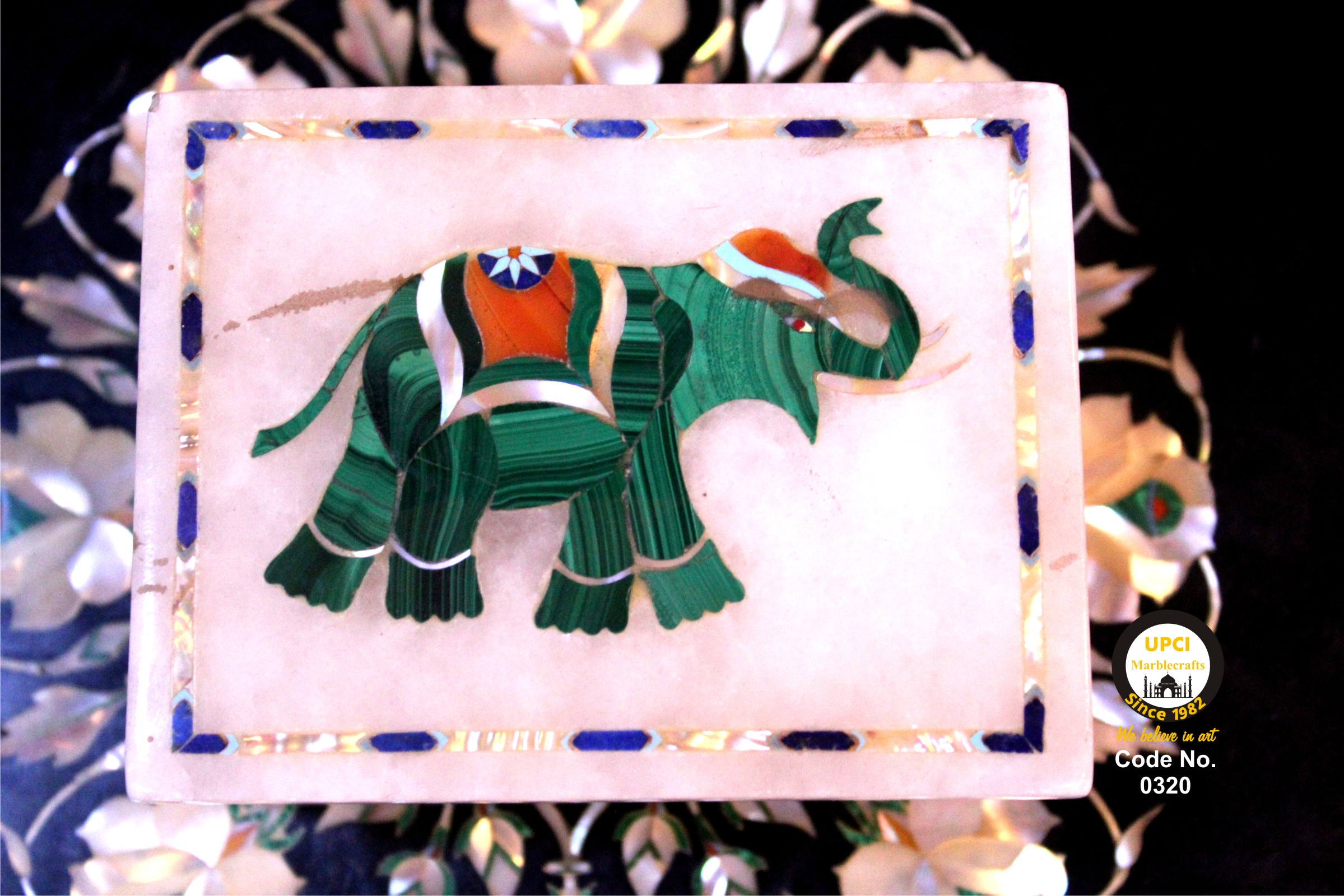 - We use semi-precious stone inlayed on marble like:- Lapis Lazualist, Cornalian, mother of pearl, Melachite, Jasper, Turquoise & Pava shell etc.