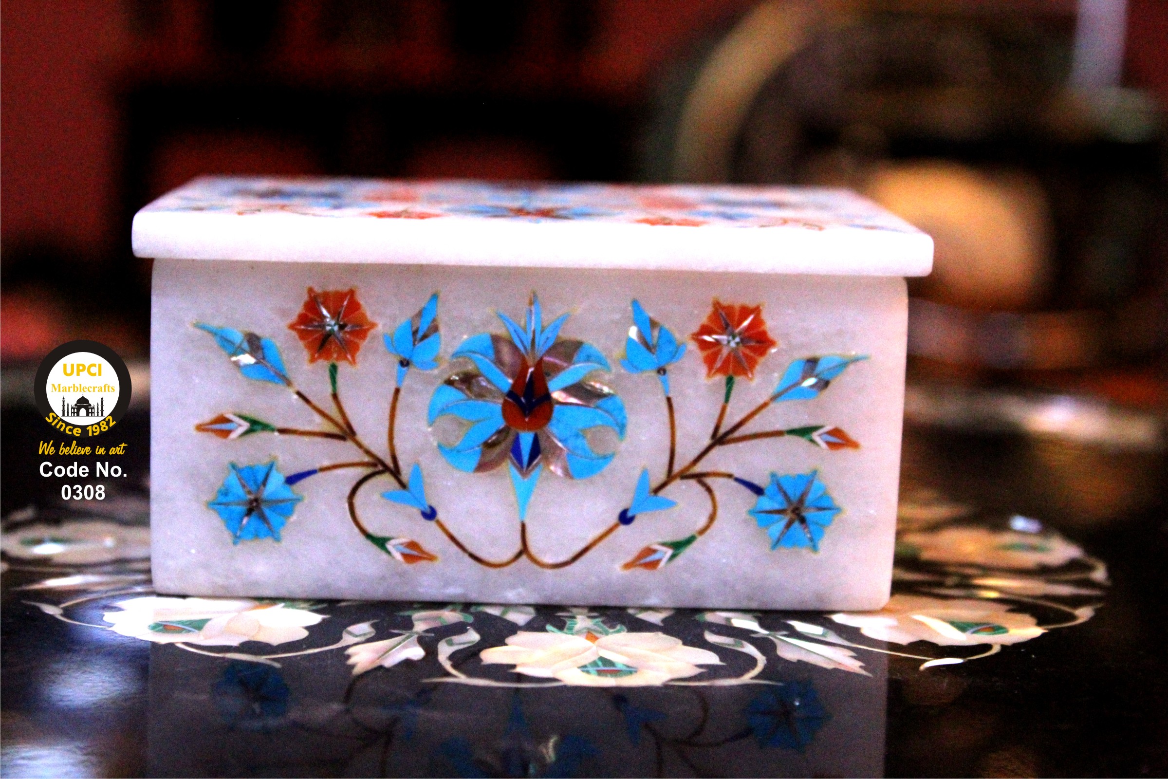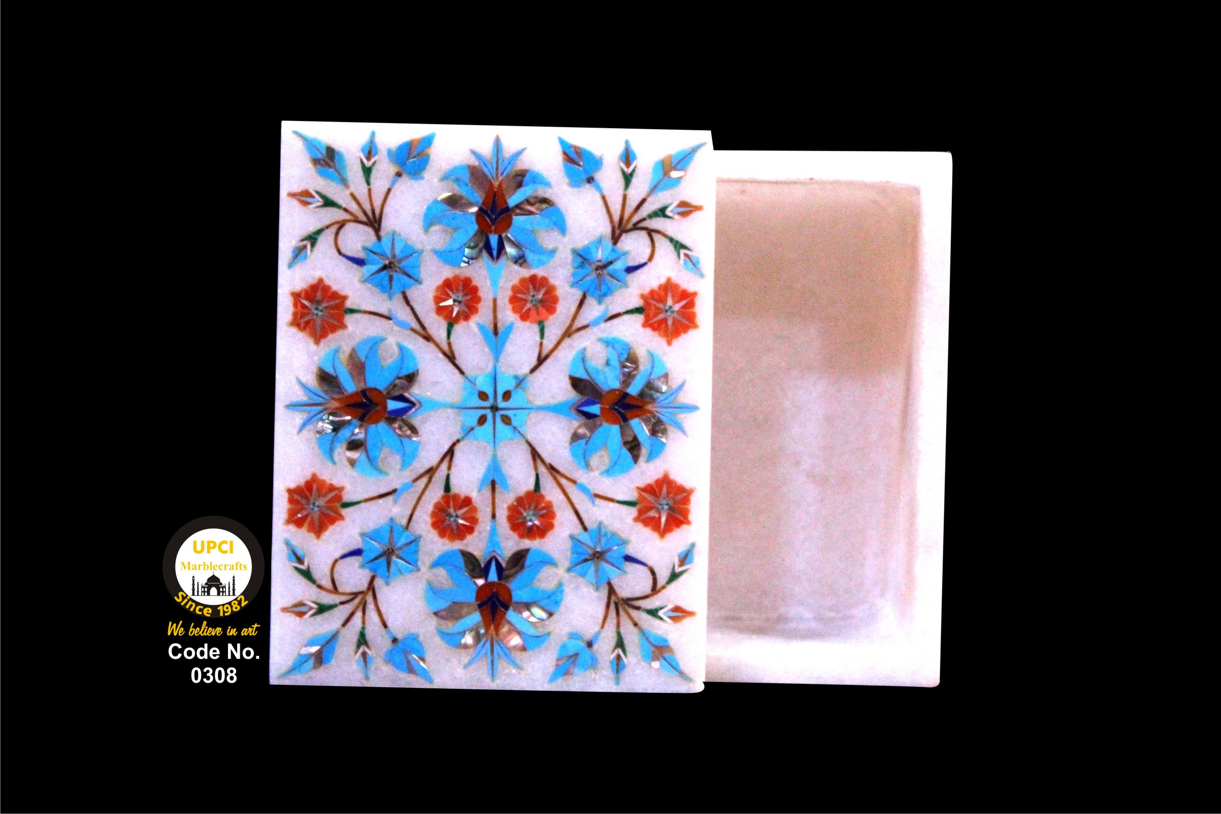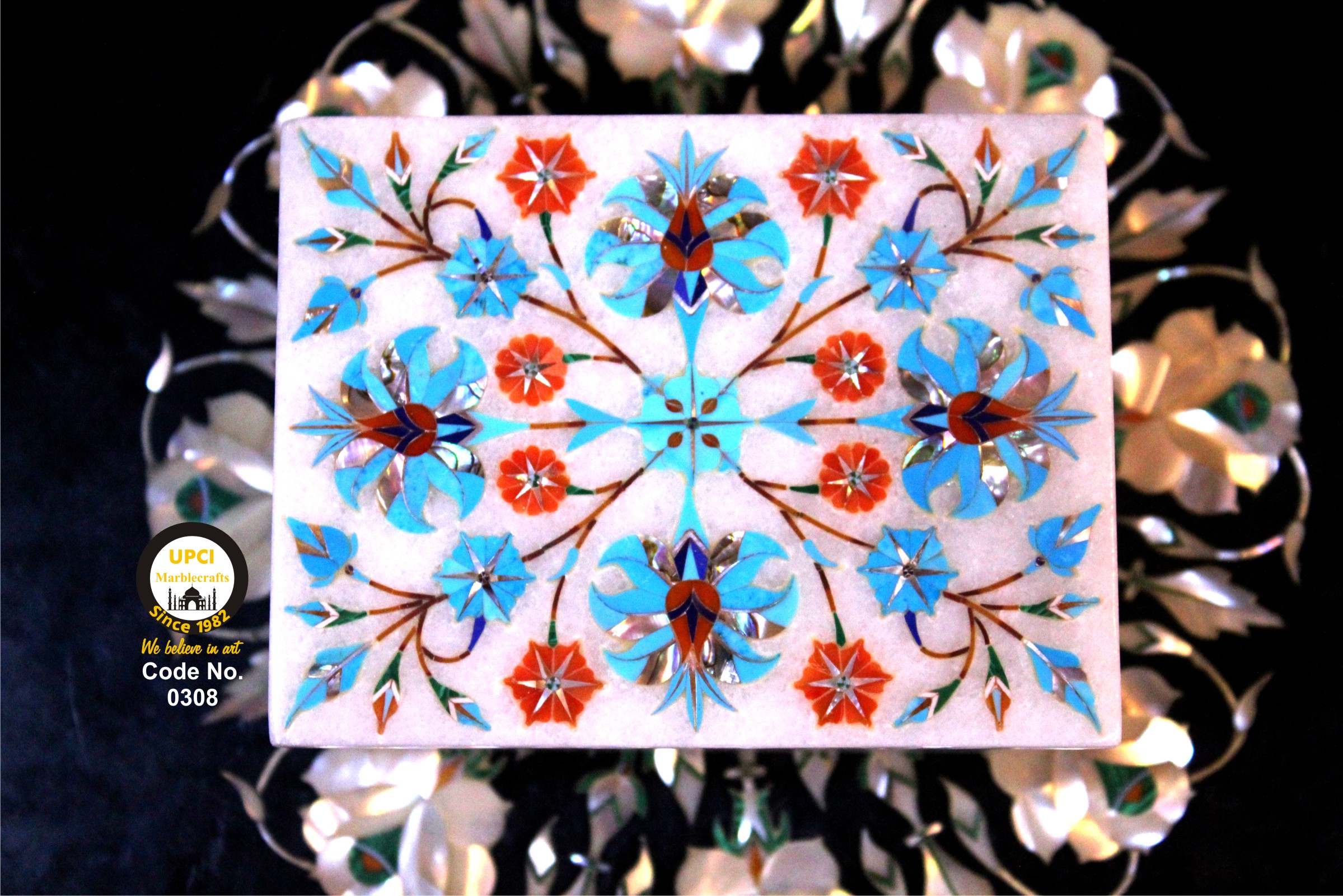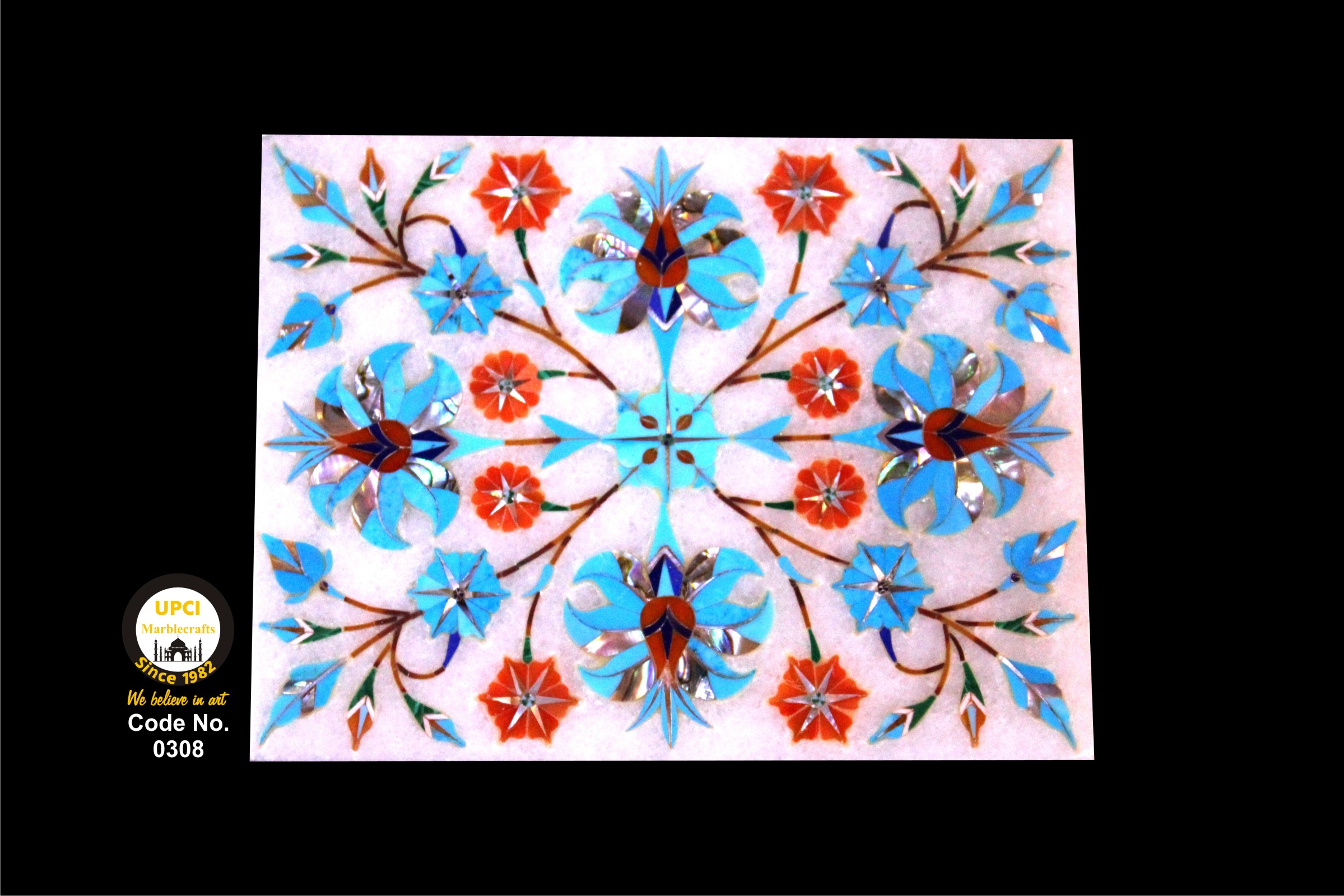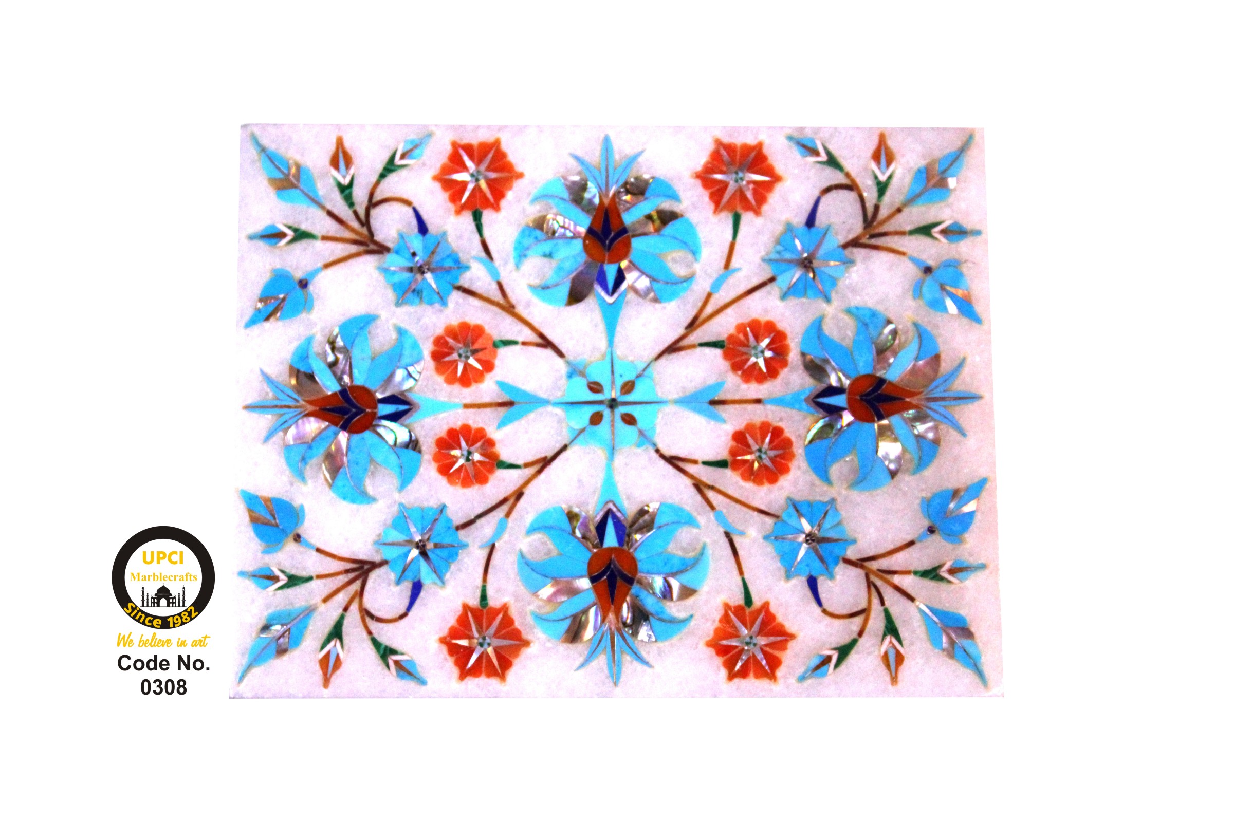 - We use semi-precious stone inlayed on marble like:- Lapis Lazualist, Cornalian, mother of pearl, Melachite, Jasper, Turquoise & Pava shell etc.