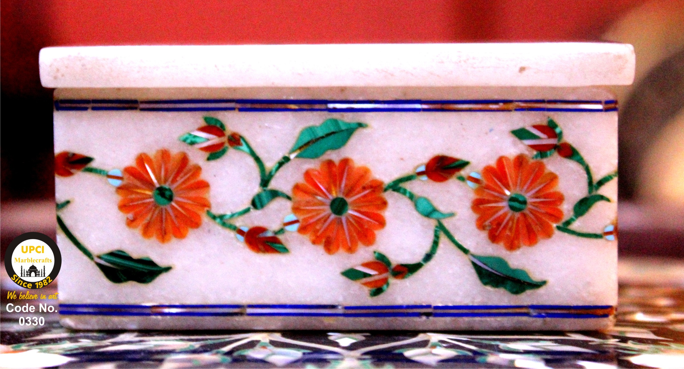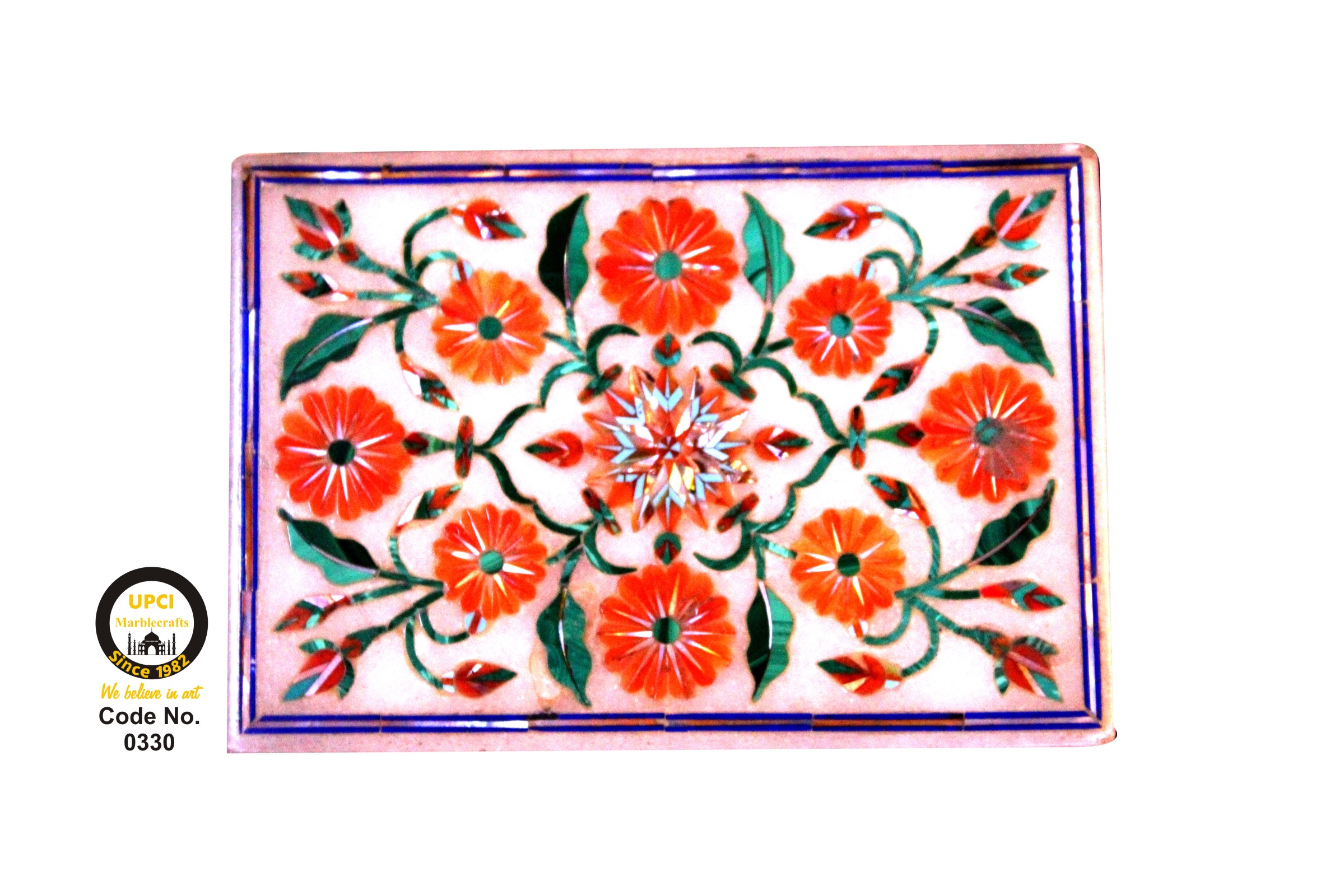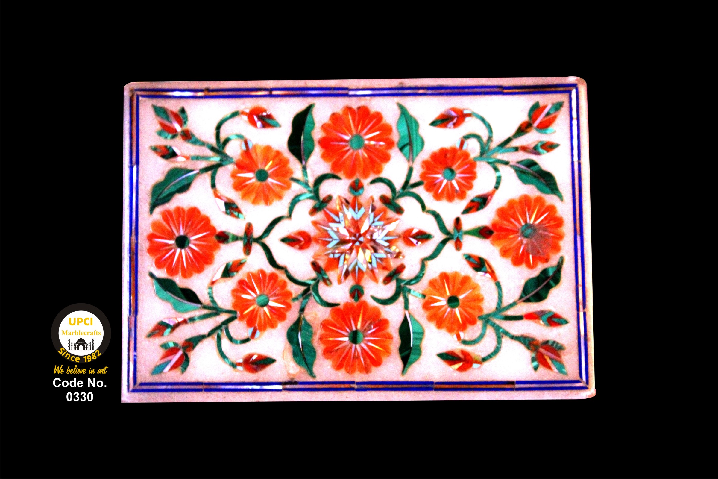 - We use semi-precious stone inlayed on marble like:- Lapis Lazualist, Cornalian, mother of pearl, Melachite, Jasper, Turquoise & Pava shell etc.