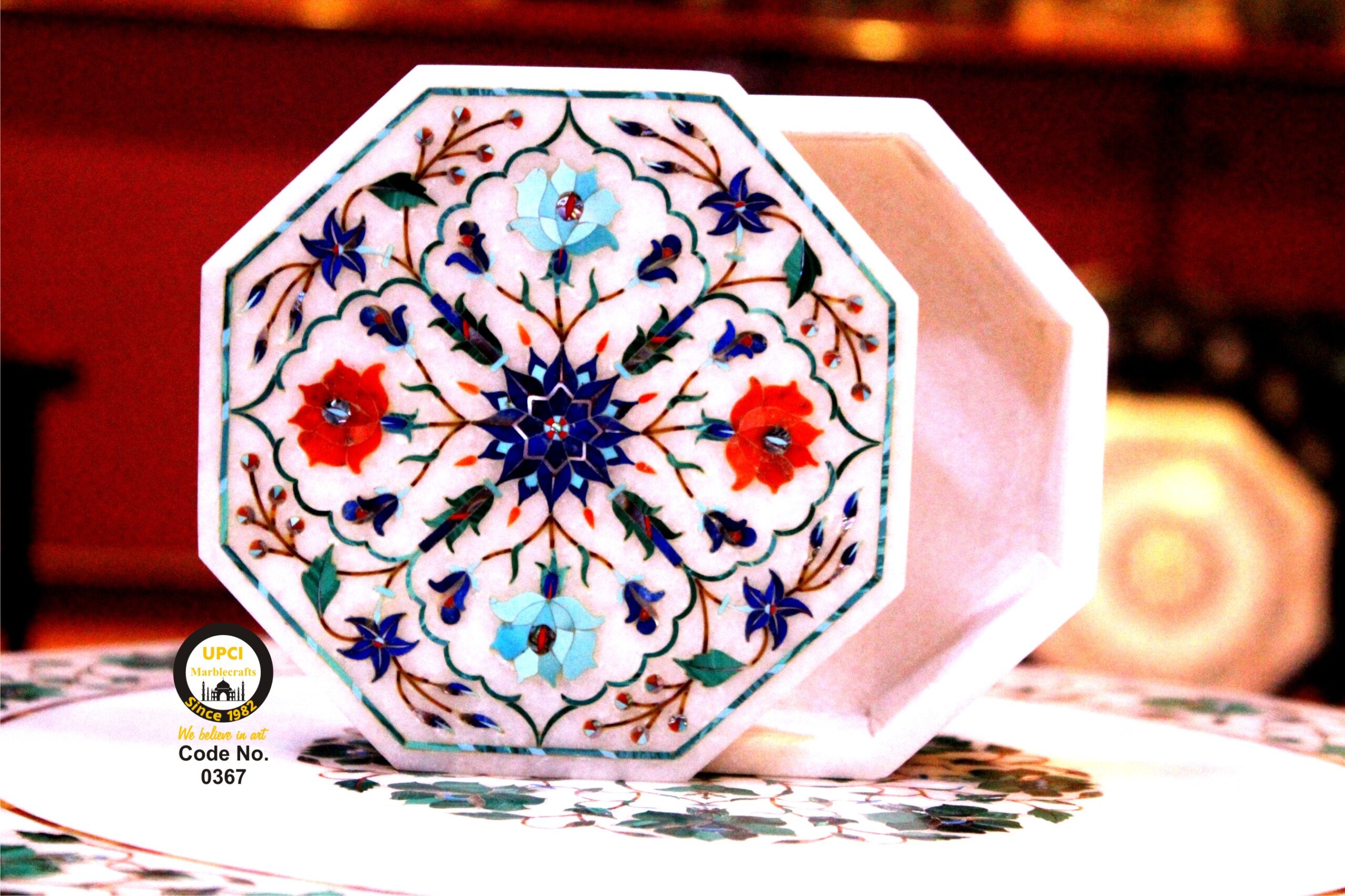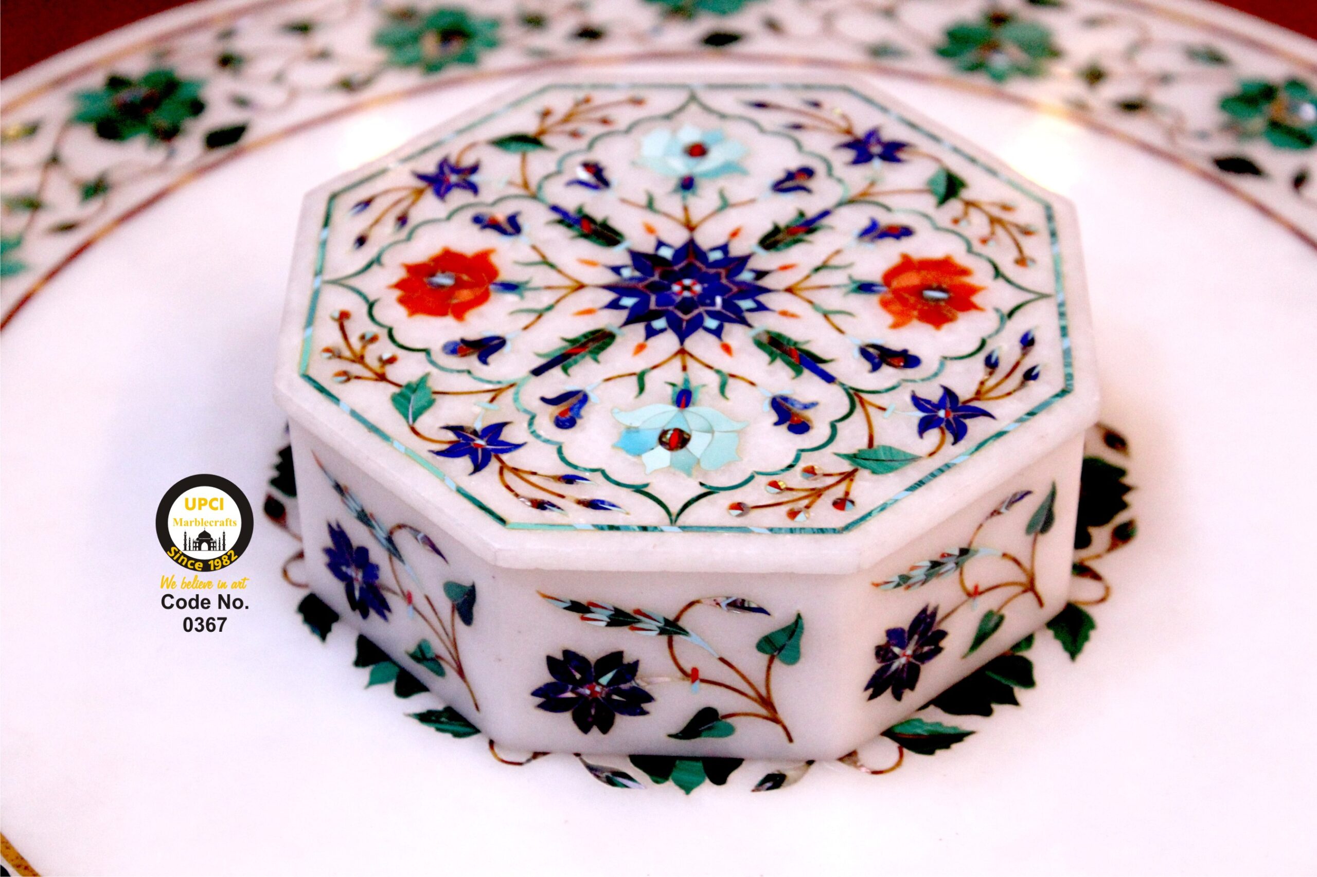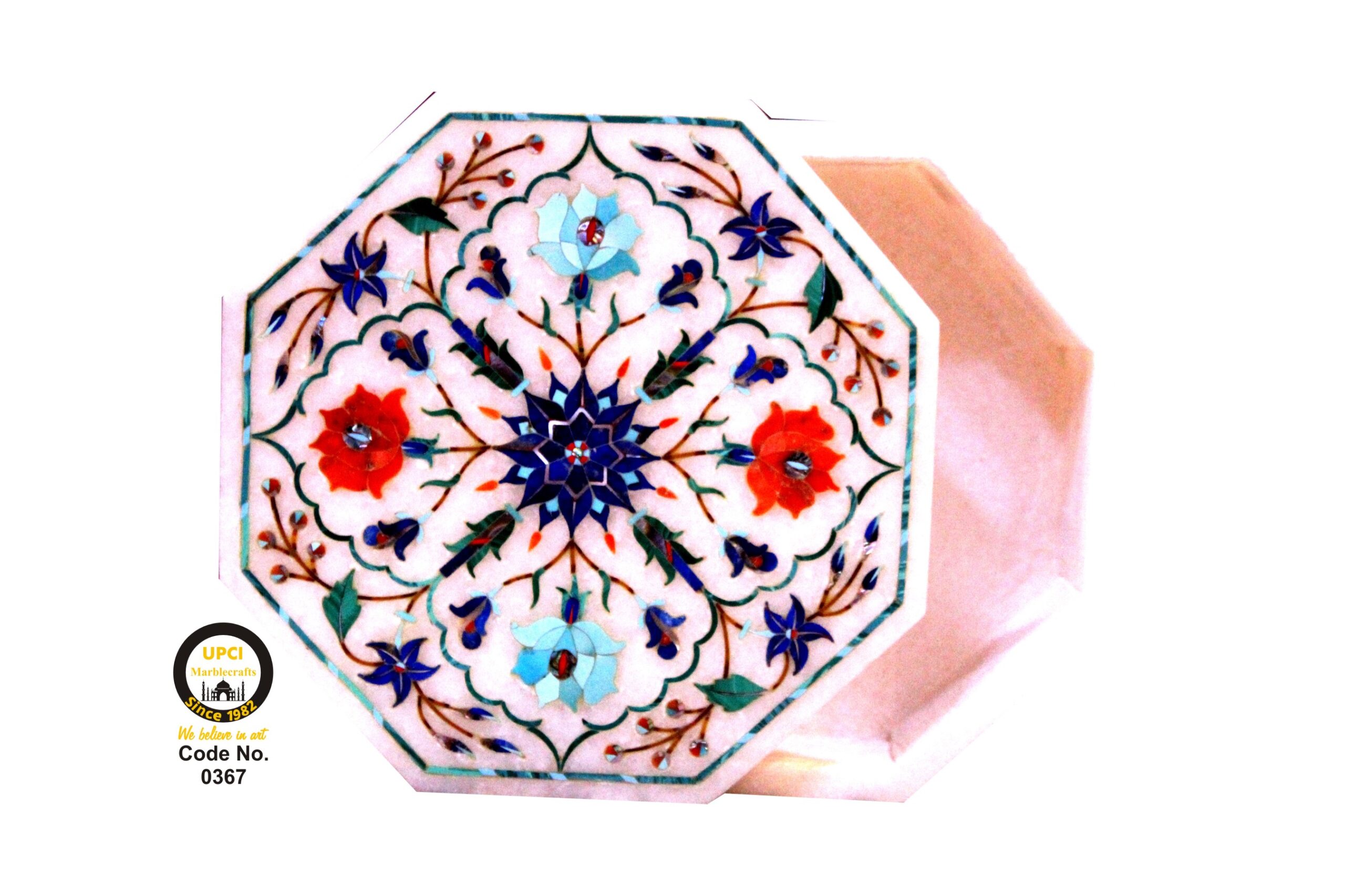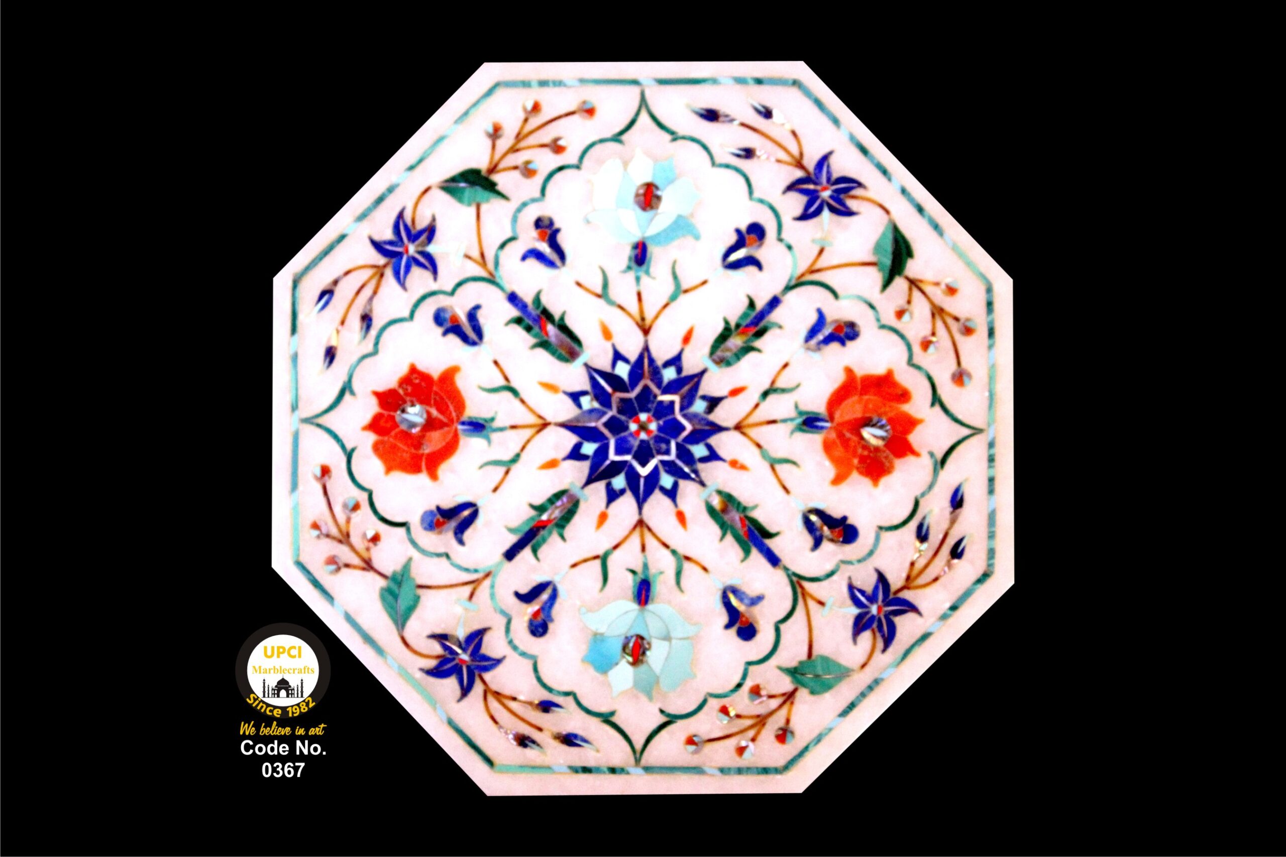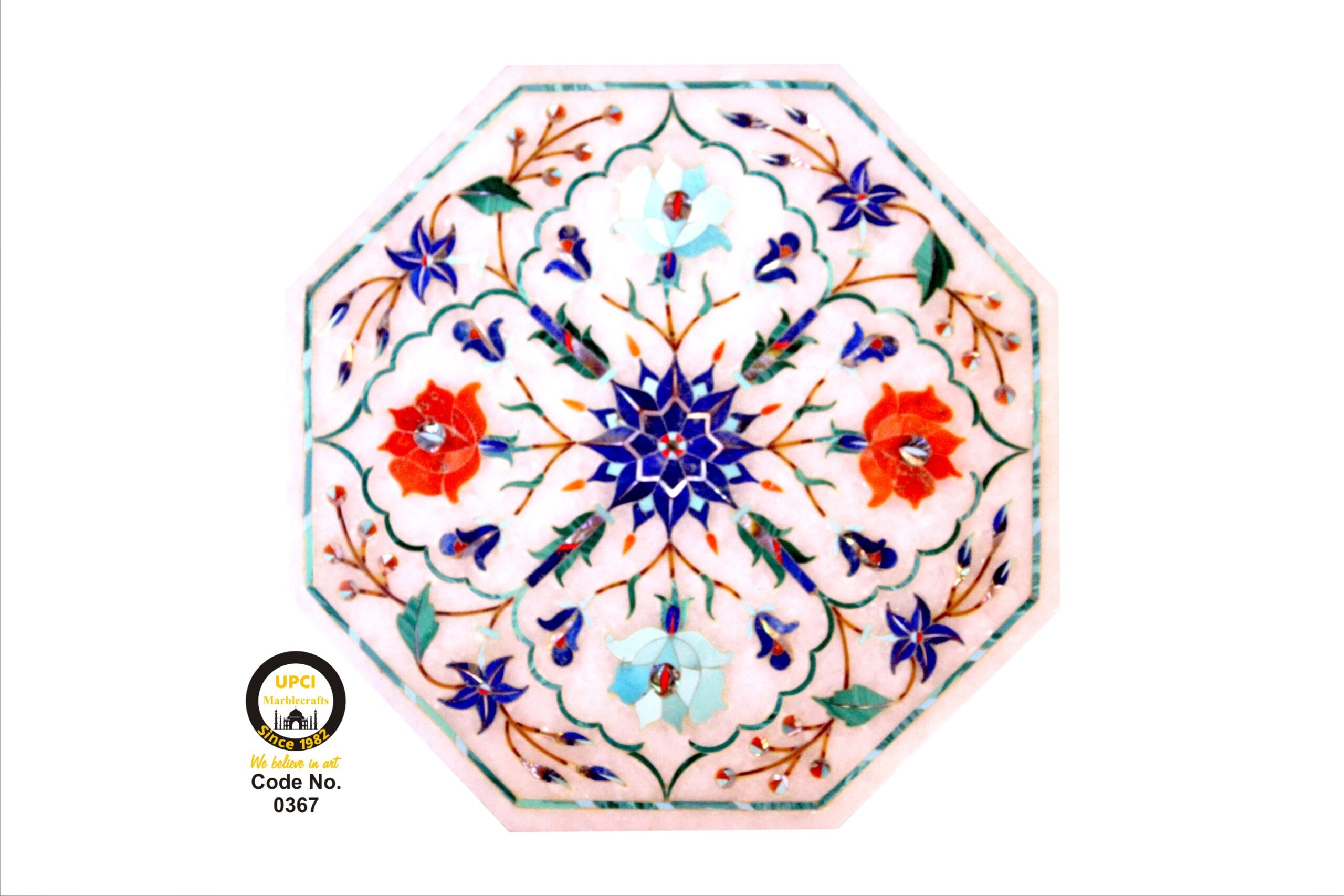 - We use semi-precious stone inlayed on marble like:- Lapis Lazualist, Cornalian, mother of pearl, Melachite, Jasper, Turquoise & Pava shell etc.