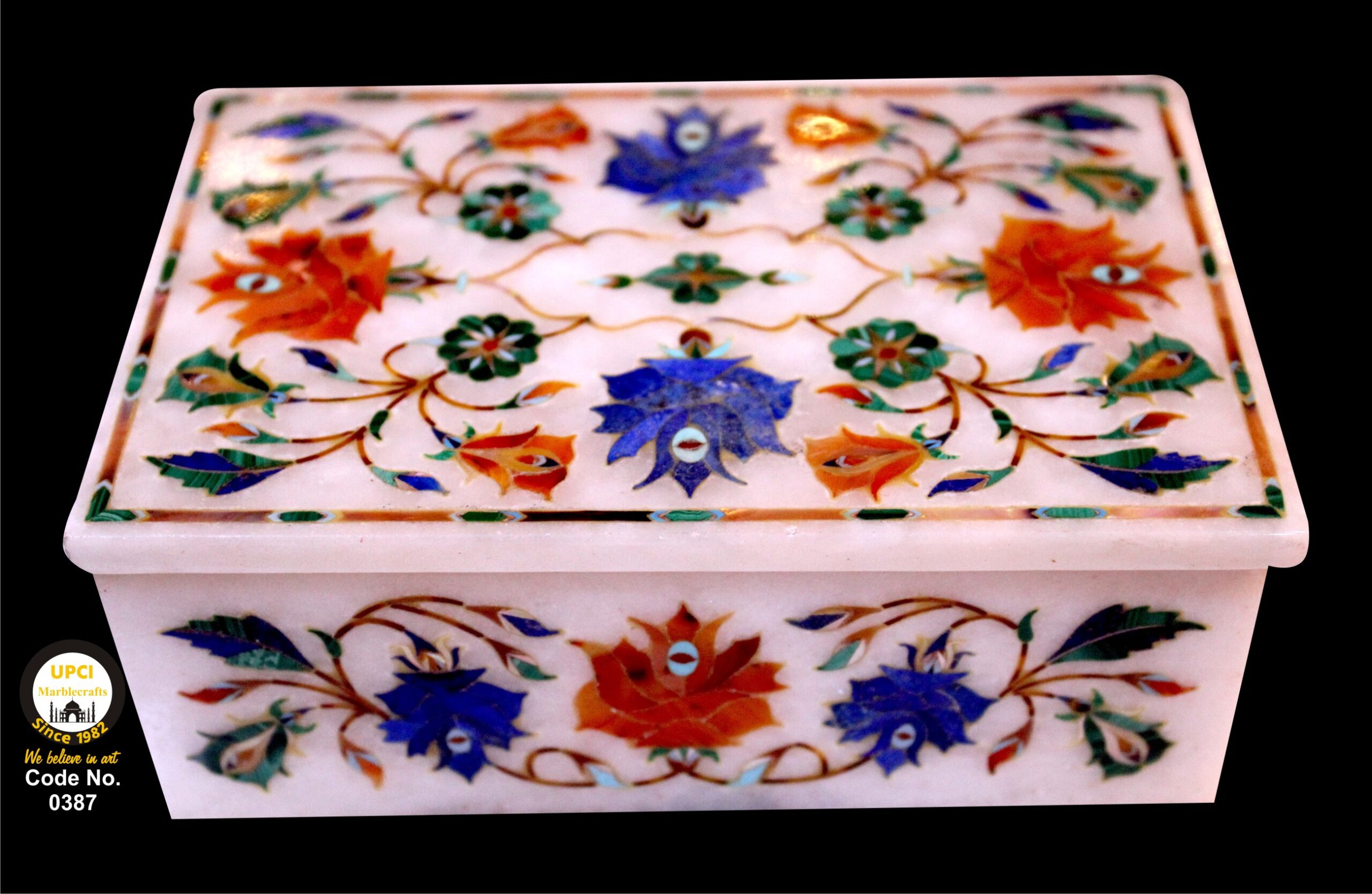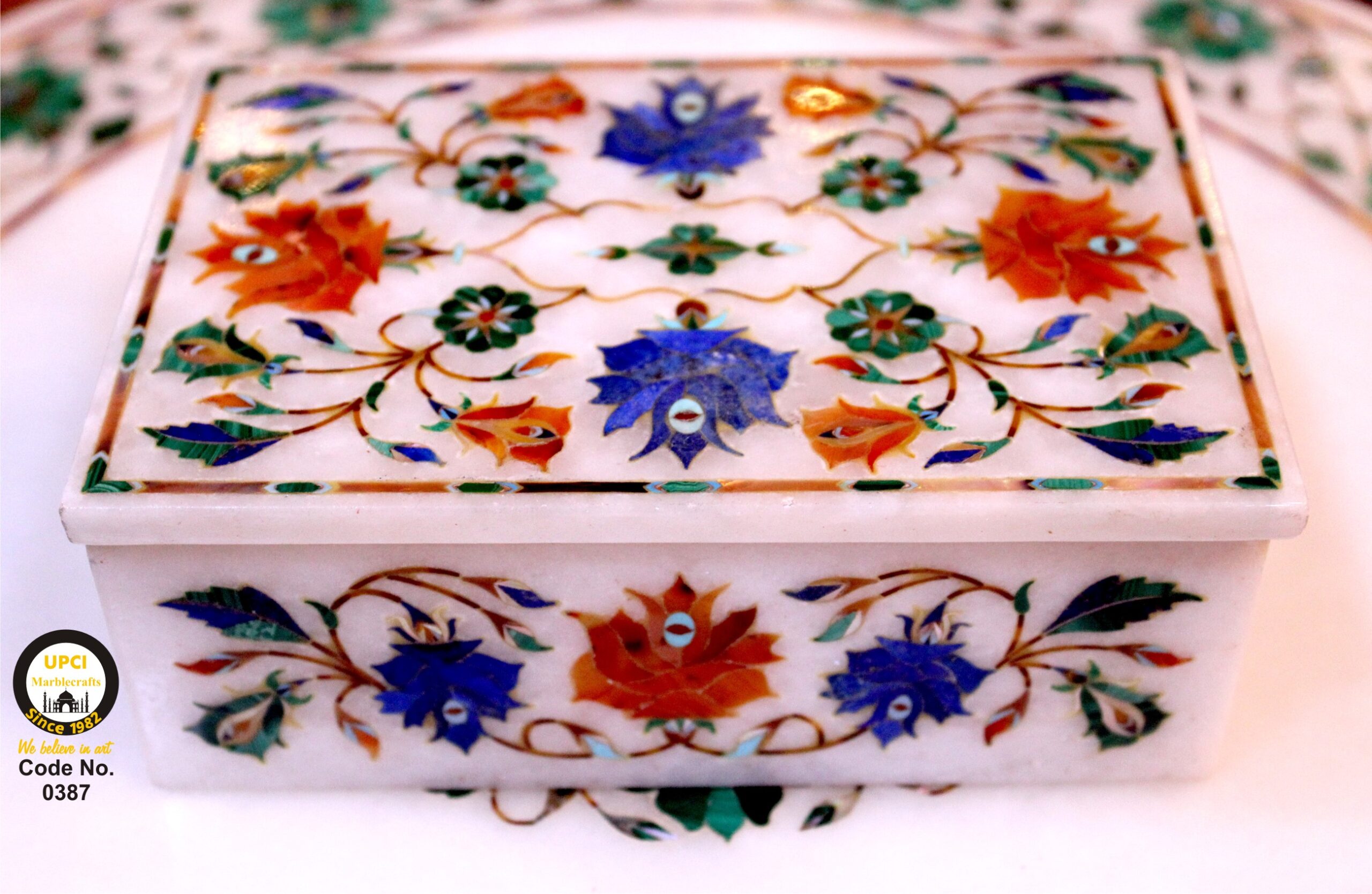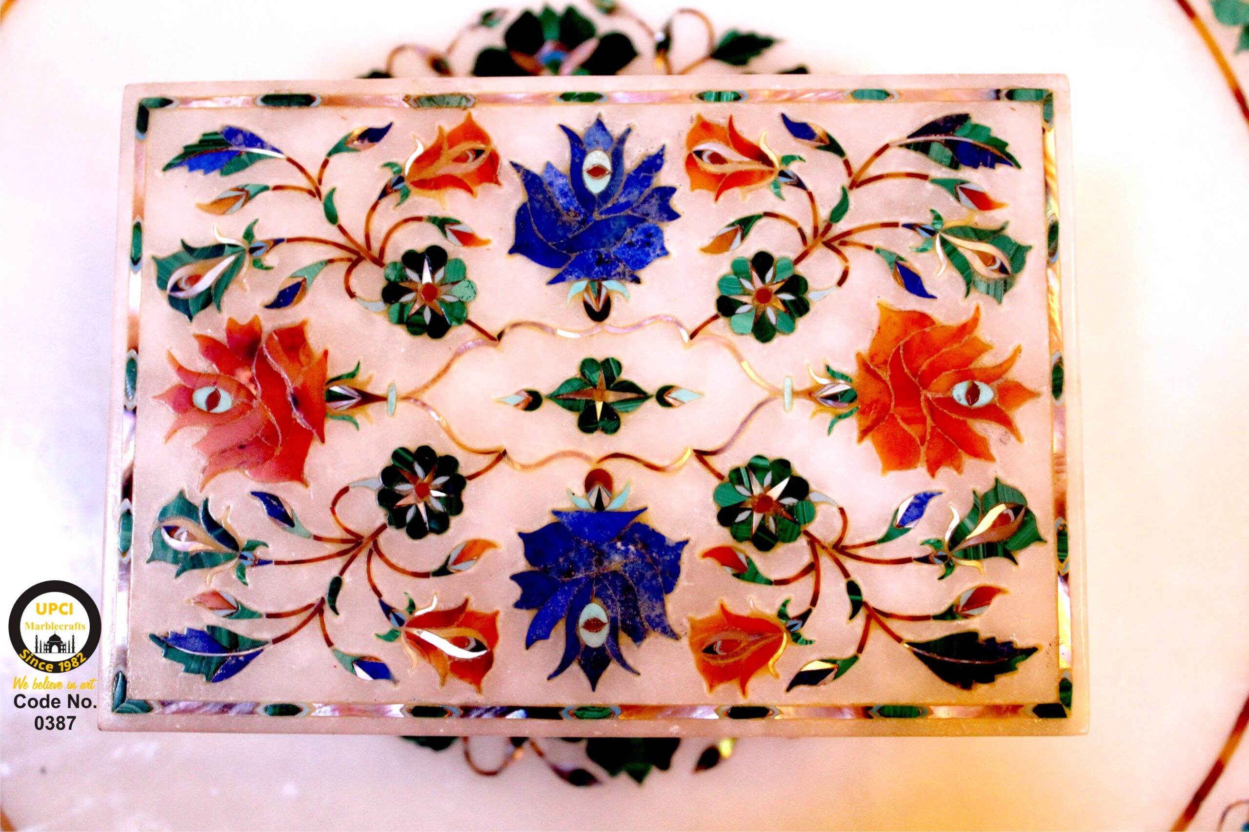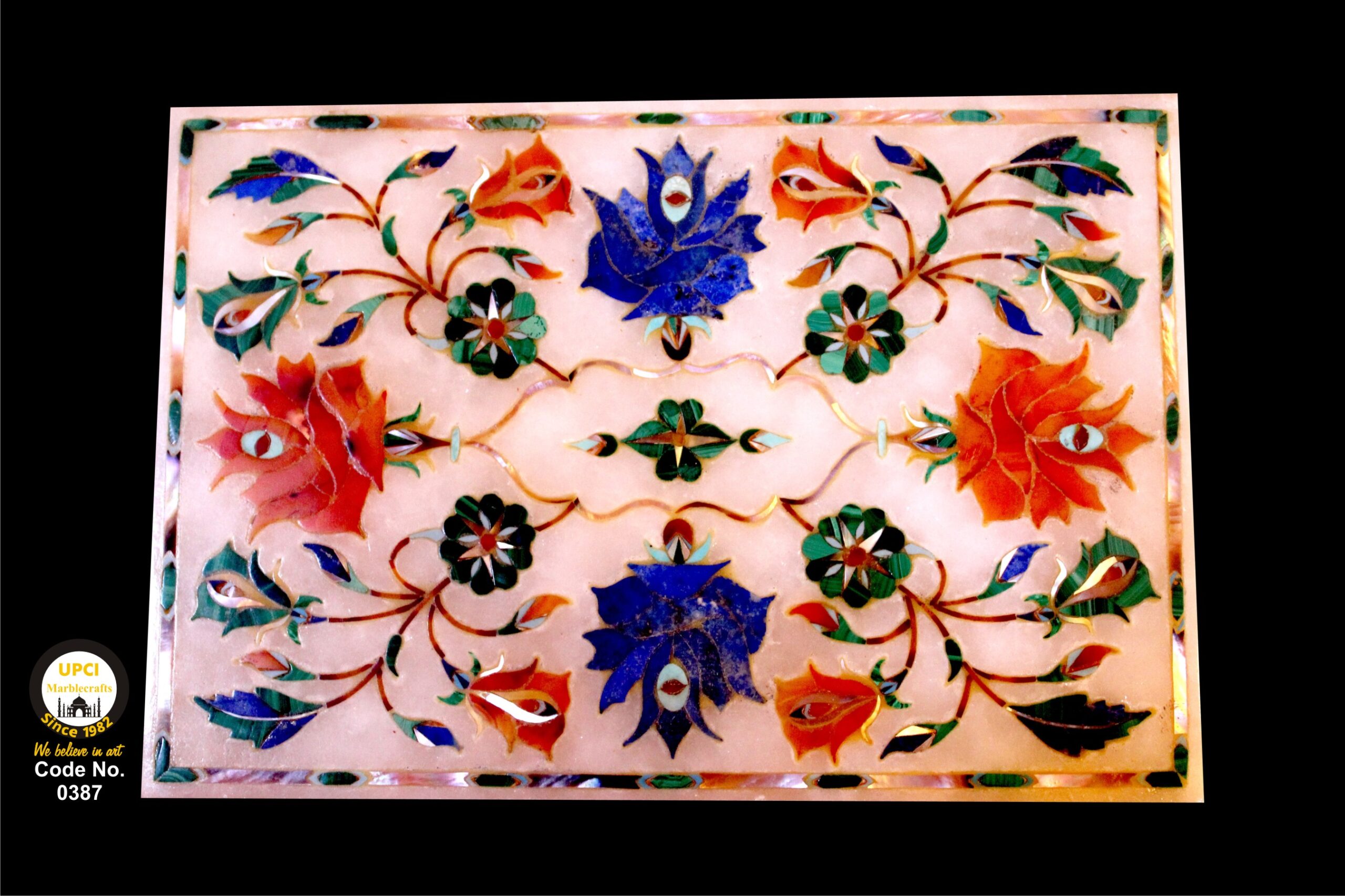 - We use semi-precious stone inlayed on marble like:- Lapis Lazualist, Cornalian, mother of pearl, Melachite, Jasper, Turquoise & Pava shell etc.