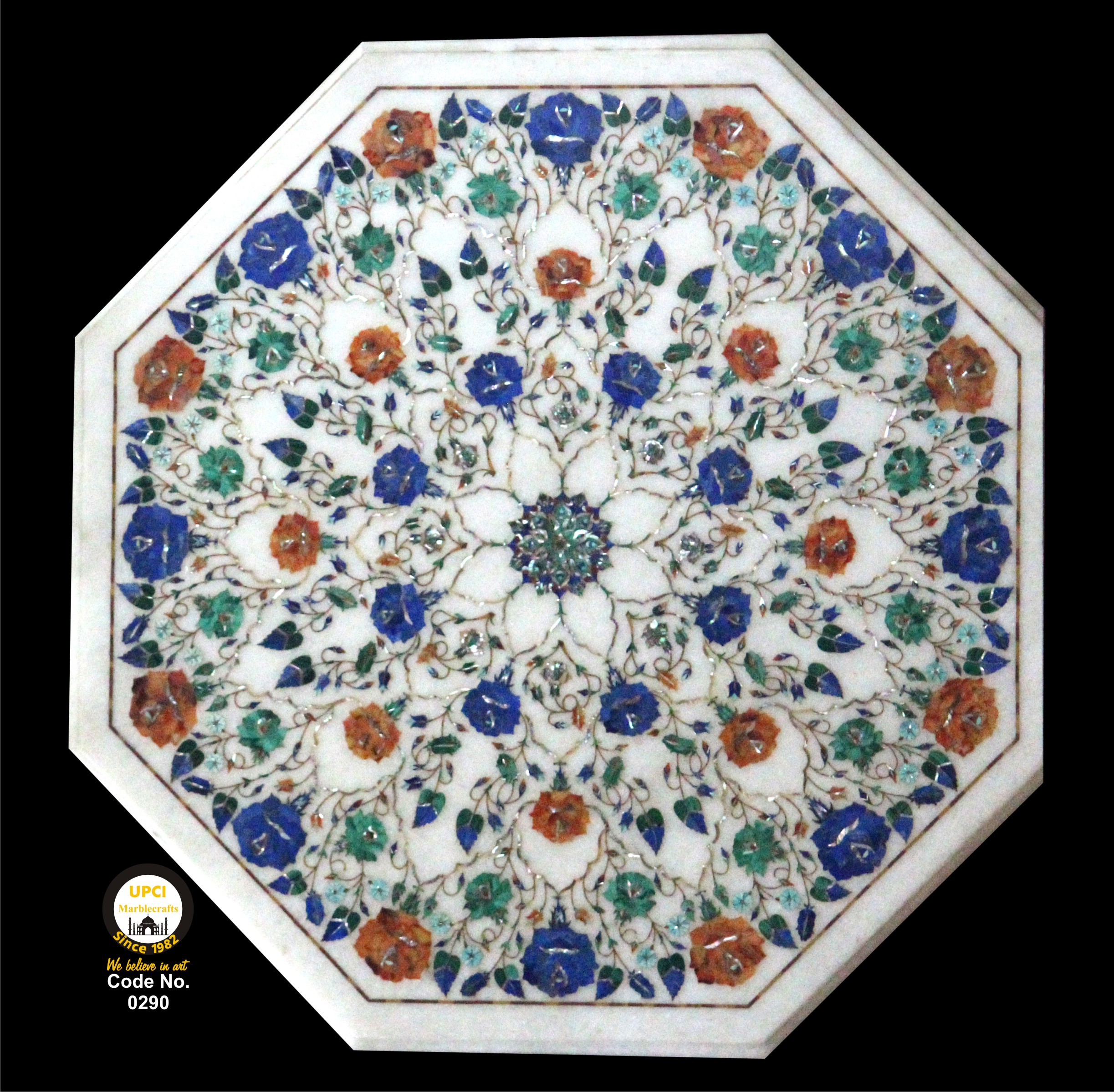 • We use semi-precious stone inlayed on marble like:- Lapis Lazualist, Cornalian, mother of pearl, Melachite, Jasper, Turquoise & Pava shell etc.