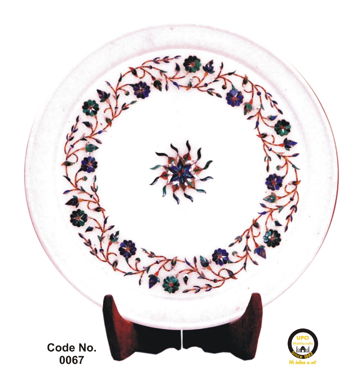 - We use semi-precious stone inlayed on marble like:- Lapis Lazualist, Cornalian, mother of pearl, Melachite, Jasper, Turquoise & Pava shell etc.