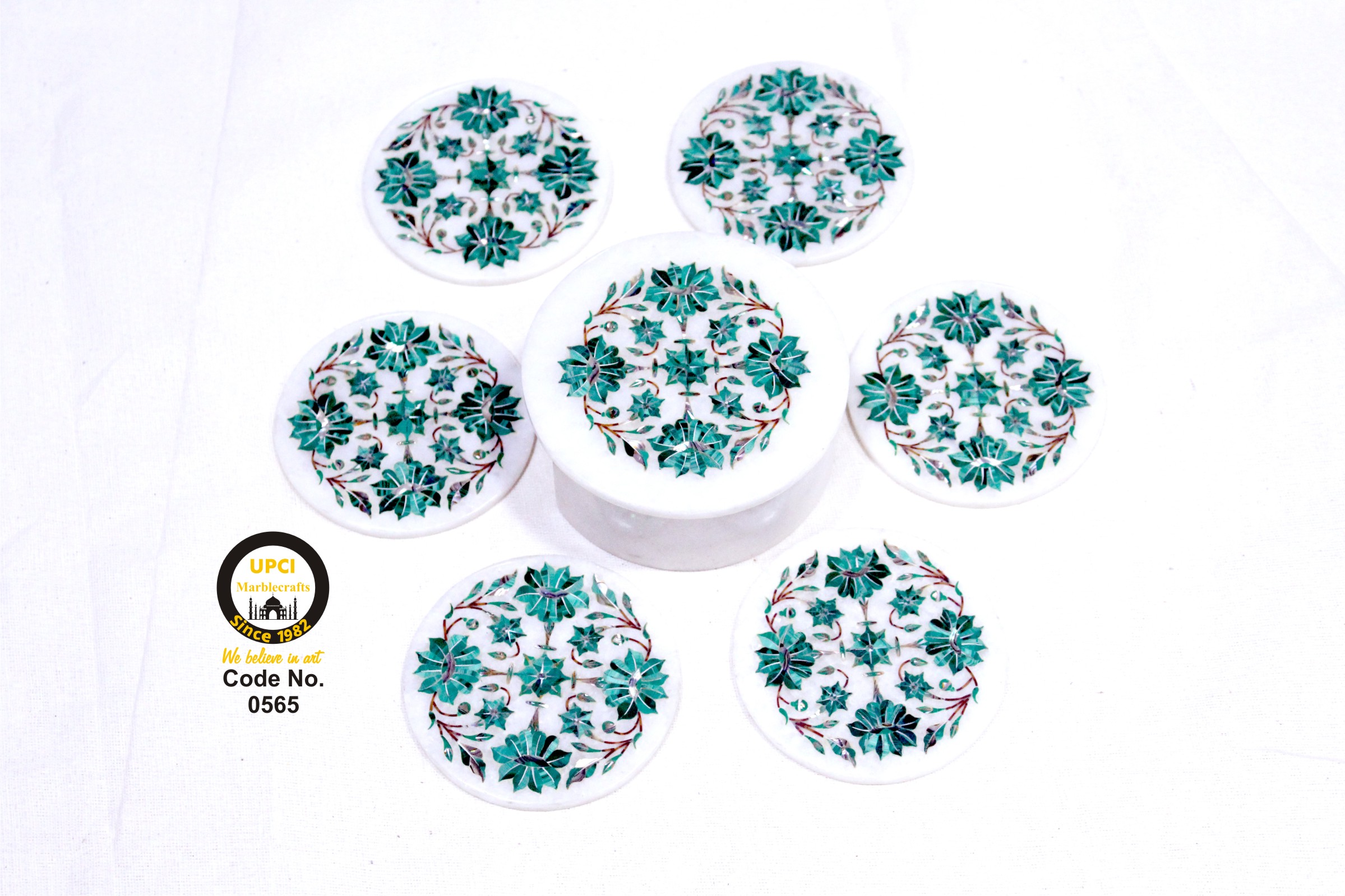 White Marble InlayWorks Coaster Set