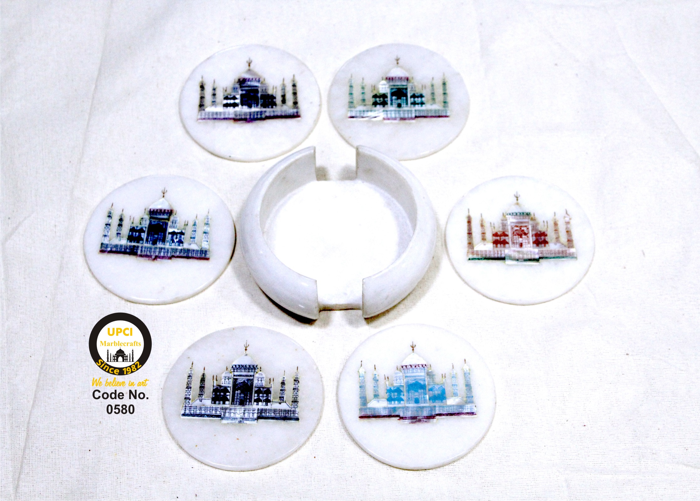Be the first to review “White Marble InlayWorks Coaster Set”