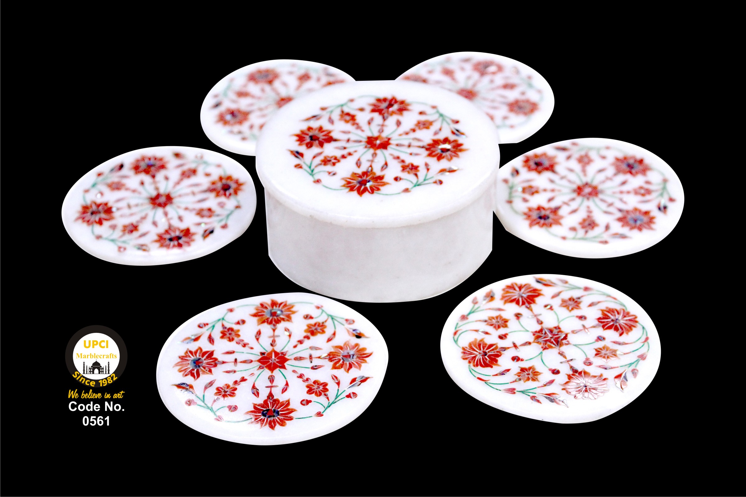 White Marble InlayWorks Coaster Set