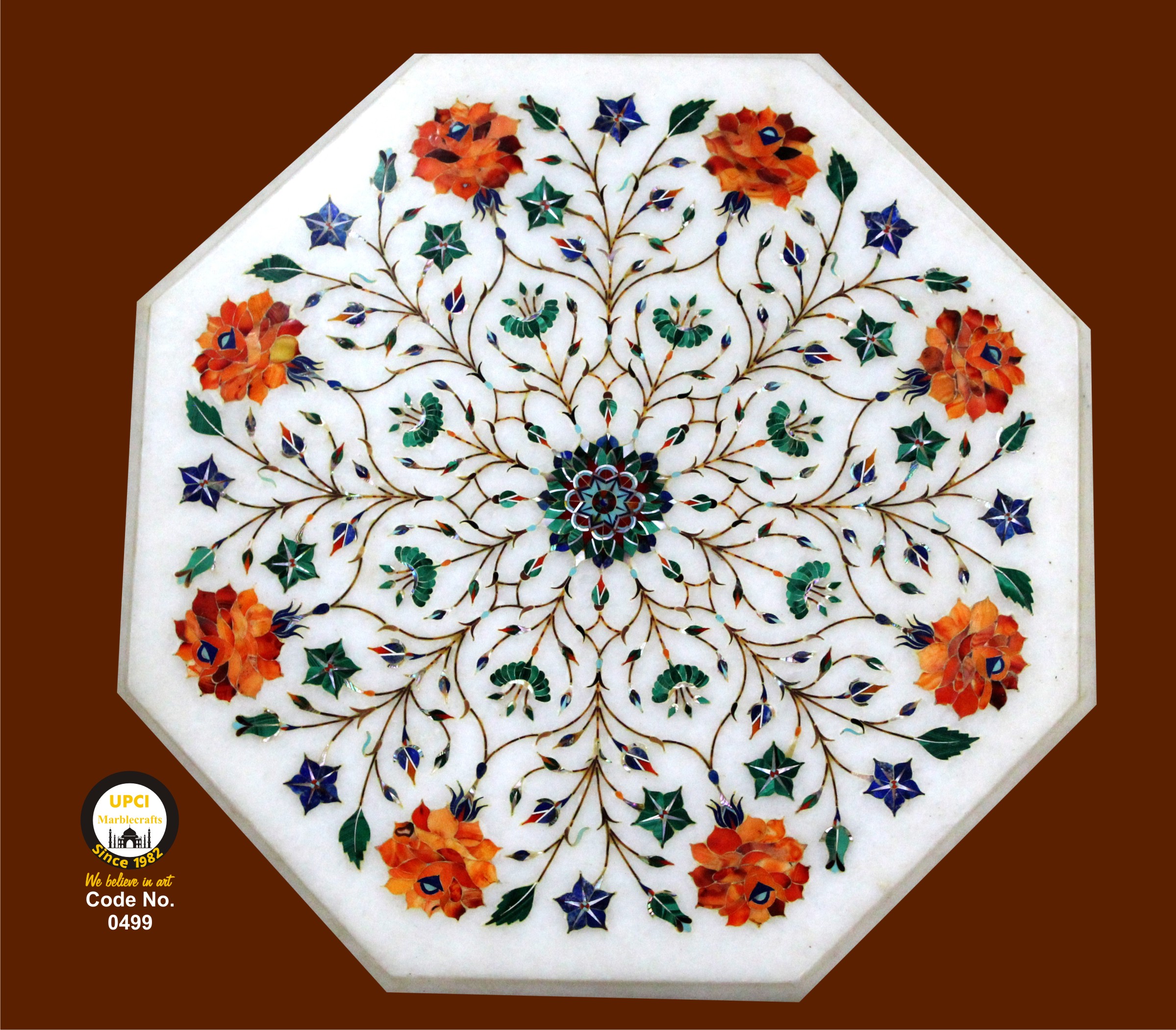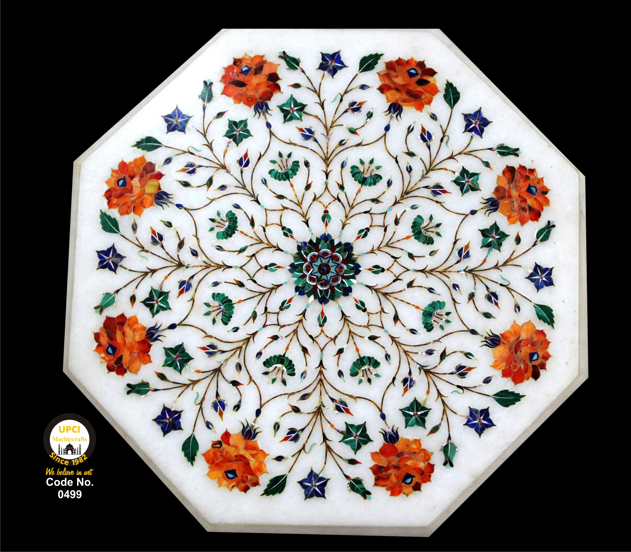 - We use semi-precious stone inlayed on marble like:- Lapis Lazualist, Cornalian, mother of pearl, Melachite, Jasper, Turquoise & Pava shell etc.
