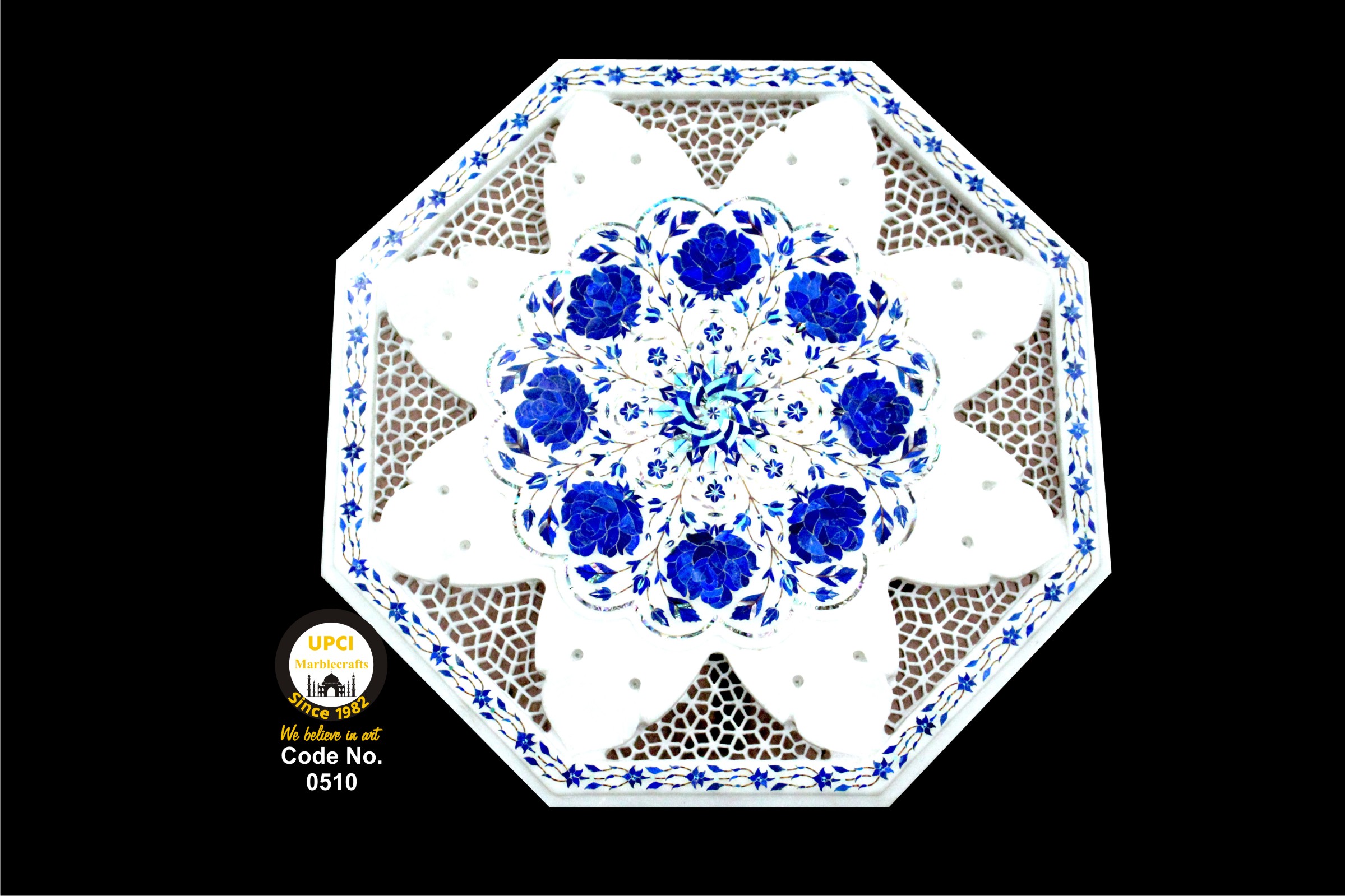 - We use semi-precious stone inlayed on marble like:- Lapis Lazualist, Cornalian, mother of pearl, Melachite, Jasper, Turquoise & Pava shell etc.