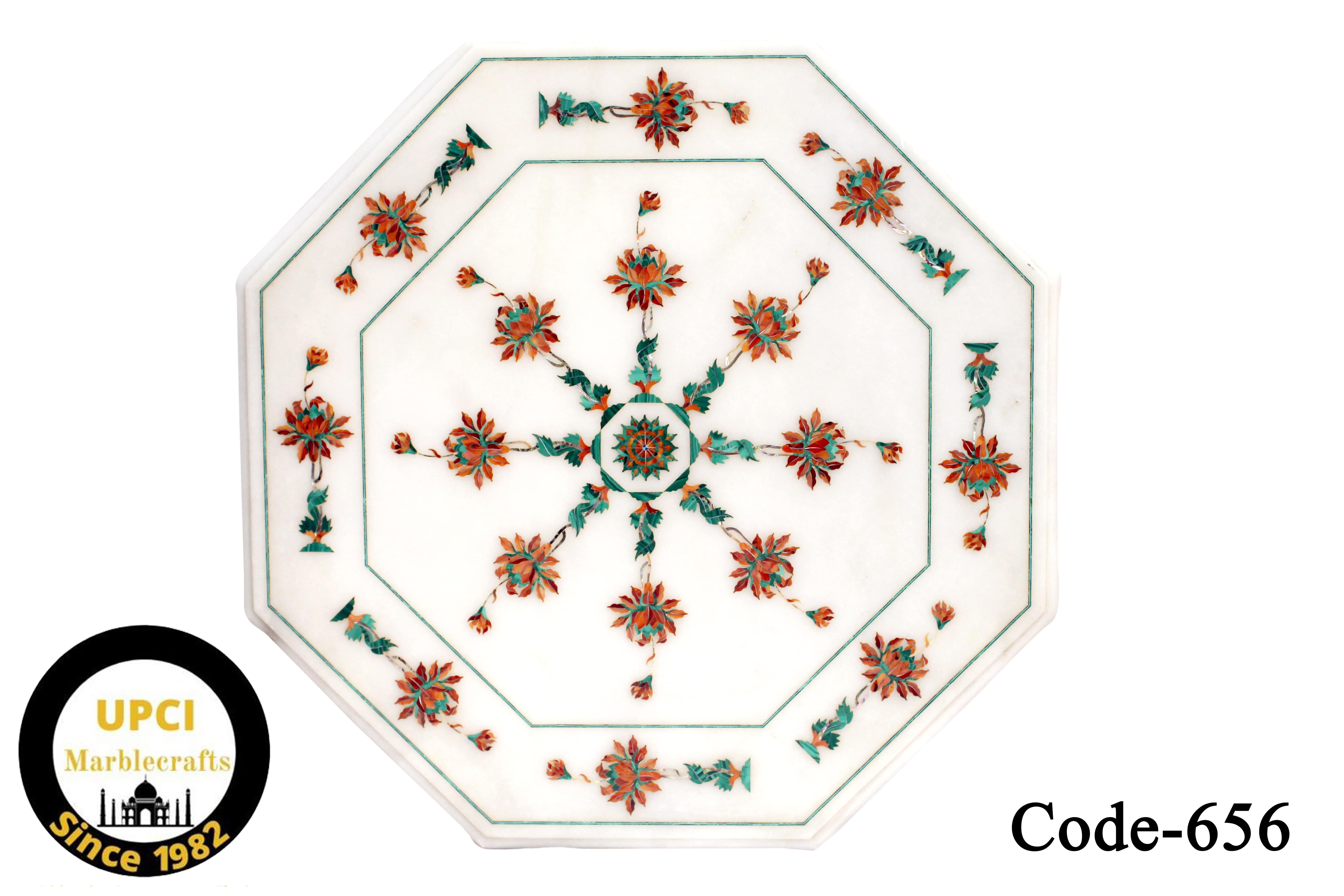 - We use semi-precious stone inlayed on marble like:- Lapis Lazualist, Cornalian, mother of pearl, Melachite, Jasper, Turquoise & Pava shell etc.